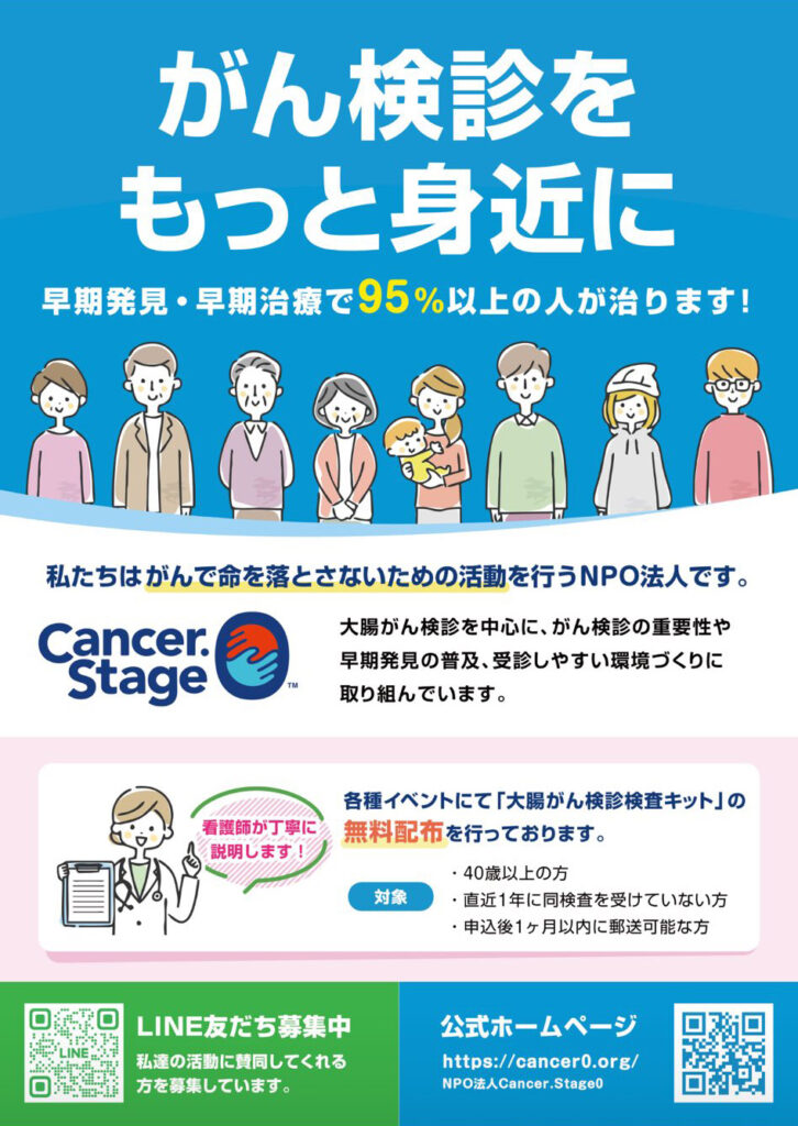 これからも、NPO法人Cancer.Stage0は「大腸がんで命を落とさない社会」の実現に向けて、地域と共に活動を続けてまいります。